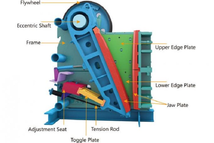 When the hydraulic jaw crusher machine works, the motor transmits through belt,drives the moving jaw to do periodic motion towards the fixed jaw by the eccentric shaft.The angle between toggle plate and moving jaw plate increases when mobile jaw moving.So the mobile jaw moves towards the fixed jaw.The stuff will be crushed in this process.The angle between toggle plate and moving jaw decreases when moving jaw moves down,the moving jaw moves leaves fixed jaw by pulling rod and spring,the final crushed stuff will be discharged from the outlet.